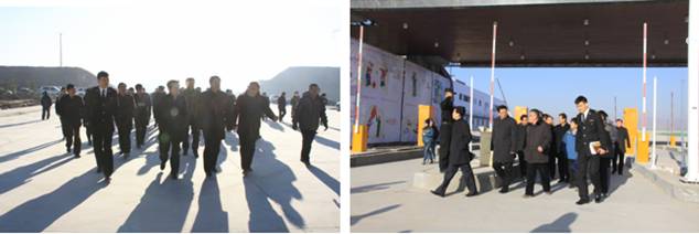 在保稅物流中心卡口上方"青海曹家堡保稅物流中心"以中英文兩種字體呈現(xiàn),海關(guān)標(biāo)識赫然醒目。王黎明副省長一行在實地查看了1#、2#保稅倉庫、卡口、查驗庫、辦事大廳等設(shè)施,并邊走邊聽取物產(chǎn)集團總經(jīng)理王玉輝關(guān)于工程施工進(jìn)展情況的匯報。