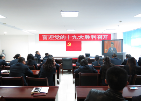 (現(xiàn)代物流 訊 和永歡/文趙琳/攝)10月18日上午9時,舉世矚目的中國共產(chǎn)黨第十九次全國代表大會在北京人民大會堂隆重開幕?,F(xiàn)代物流公司黨支部組織全體黨員、發(fā)展對象、入黨積極分子、主管以上干部及商戶黨員代表共計25人在公司會議室收看了十九大開幕式直播盛況,并認(rèn)真聆聽了習(xí)總書記代表十八屆中央委員會作的報告。