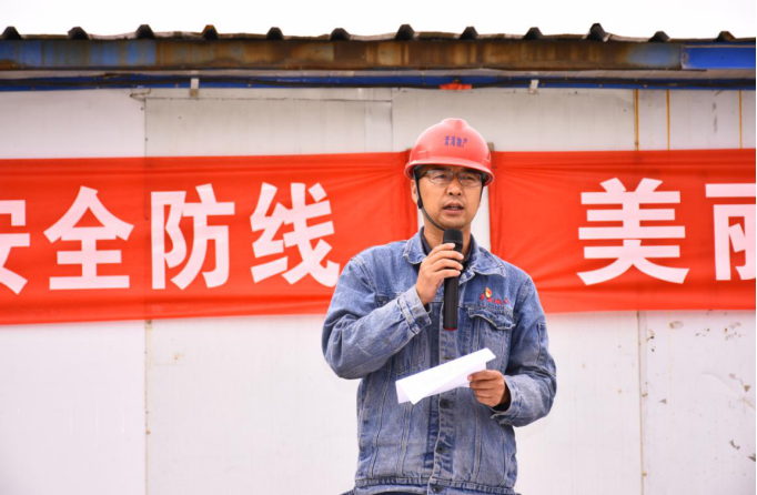 啟動式上,公司中層管理人員代表發(fā)言,并莊重承諾:"嚴格遵守安全操作規(guī)程,認真排查治理安全隱患,堅決做到不違章指揮、不違章作業(yè)"。