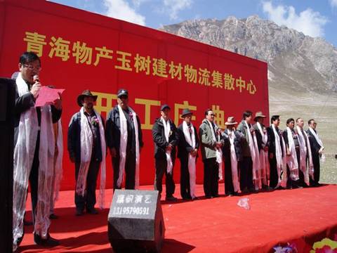 王總在開工儀式上講道:"地震摧毀了美麗的玉樹,但我們要從廢墟中挺立起來,用自己勤勞的雙手,去建設一個更加美麗、更加富饒、更加和諧的社會主義新玉樹。"這是黨和政府的囑托,也是災區(qū)人民殷切的期盼。作為省內長期從事生產資料流通的大型國有企業(yè),我司有責任、有義務,發(fā)揚一方有難,八方支援,團結互助,共克時艱的精神,積極投身到玉樹災后重建工作中去。我司在中標政府采購的2萬噸鋼材和2.1萬立方米木材的基礎上,再投資2600萬元建設青海物產玉樹建材物流集散中心,我們將在最短的工期內,用科學、綠色的施工方法將建材物流集散中心建成使用,并在未來3年時間內,完成玉樹災后重建所需的包括鋼材、木材、陶瓷建材、裝飾建材等物資的供應配送,為相繼開工的各個建設項目,提供源源不斷的建筑材料物資保障。為建設一個更加美麗、更加富饒、更加和諧的社會主義新玉樹奉獻我們青海物產人的力量。
