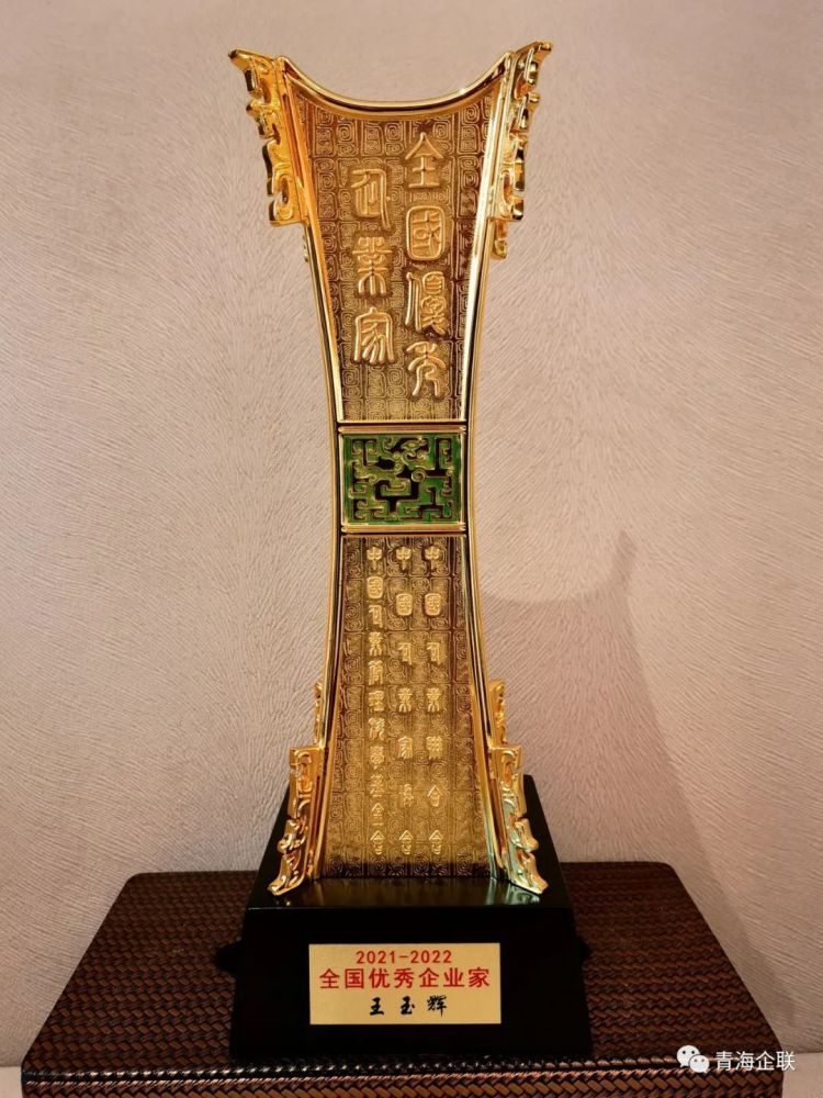 與會領(lǐng)導(dǎo)為青海物產(chǎn)集團(tuán)黨委書記、董事長王玉輝頒發(fā)獎杯