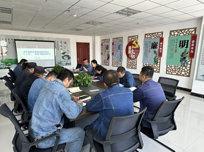 會上,集團黨委委員、副總經理秦翡同志以《關于如何在物流領域中踐行“二十大”“兩會”精神的思考》為題,從“前言及背景、‘二十大’報告相關原文、 2023‘兩會’政府工作報告相關原文、如何理解‘物流’和物流領域的發(fā)展展望”等五大方面為機關黨支部全體黨員深入淺出的講解黨的二十大報告中關于物流領域發(fā)展的新知識,并詳細闡述了物流涵義及物流體系發(fā)展歷程,并從“數(shù)字化、智能化、環(huán)保綠色”三個方面對物流領域做出展望。