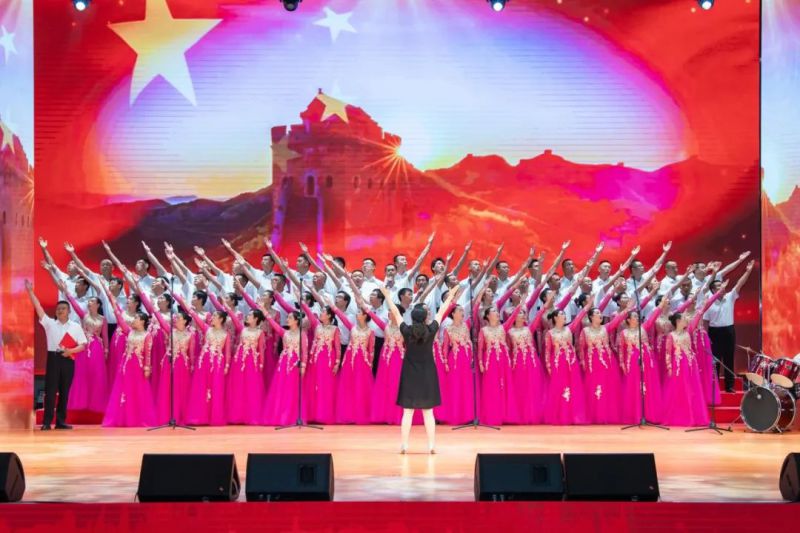 歷經(jīng)2個(gè)多月的精心籌備與刻苦訓(xùn)練,舞臺上的他們?nèi)橥度搿⒐睬楣缠Q,用優(yōu)美嘹亮的歌聲唱響對祖國的贊美與熱愛,訴說那段波瀾壯闊的歷史。一首《領(lǐng)航》抒發(fā)了“感黨恩,聽黨話,跟黨走”熾熱的愛黨愛國情懷和奮進(jìn)新征程的豪情壯志?!洞笾袊凡粌H唱出了對祖國的熱愛,也唱出了物產(chǎn)人“一家人、一條心、一起干”的團(tuán)結(jié)精神,展現(xiàn)了新時(shí)代國有企業(yè)職工的昂揚(yáng)精神。