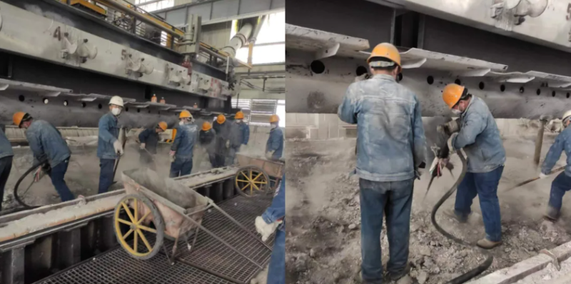 電解槽大修如同外科手術(shù),需在有限停槽期內(nèi)完成數(shù)個(gè)部件的拆解、檢測(cè)與更換。延誤一天,意味著效益的損失。為搶進(jìn)度,電解車間將人員分成四班倒,可實(shí)際干起來,所有人都不約而同選擇了“連軸轉(zhuǎn)”。技術(shù)員小王剛下白班,見夜班人手緊張,抓起手套又鉆進(jìn)了槽底:“早一天啟動(dòng),就能多增加1噸多的鋁液!”槽頂排風(fēng)機(jī)的嗡鳴聲中,安全員老周扯著嗓門喊:“防護(hù)面罩戴緊!粉塵吸進(jìn)肺里要命!”他手里的強(qiáng)光手電掃過槽底,光束里翻騰的塵埃像一場(chǎng)無聲的雪暴。十幾米長的電解槽如同被解剖的巨獸,槽殼敞露,陰極鋼棒上斑駁的電解質(zhì)結(jié)痂仿佛鱗片,記錄著它連續(xù)運(yùn)轉(zhuǎn)10多年的疲憊。這是大修的關(guān)鍵戰(zhàn)役—— 7天內(nèi),必須讓電解槽“復(fù)活”。