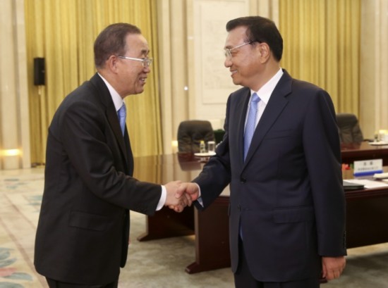 李克強(qiáng)總理會(huì)見(jiàn)聯(lián)合國(guó)秘書(shū)長(zhǎng)潘基文時(shí)說(shuō):"人類(lèi)面臨的最大挑戰(zhàn),是在處理'減貧'和'應(yīng)對(duì)氣候變化'兩個(gè)問(wèn)題的過(guò)程中,取得一個(gè)平衡點(diǎn)。"