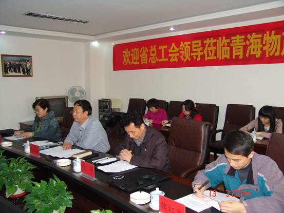 2012年12月13日下午,省總工會第六考核組組長、省總副巡視員兼法律保障部部長李忠云、考核組成員、省總機關(guān)黨委專職副書記呂華、考核組成員、省總組織部副調(diào)研員姬紅捷、考核組成員、省總經(jīng)濟部魏紅巖一行蒞臨青海物產(chǎn)集團,對物產(chǎn)工會2012年度工作開展情況進行考核。