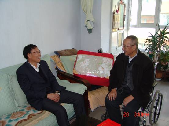 2013年1月28日,春節(jié)來臨之際,省委組織部王志明副部長在省國資委黨委副書記毛占彪、物產(chǎn)集團(tuán)領(lǐng)導(dǎo)白家林、王仁芬的陪同下,走訪慰問了集團(tuán)系統(tǒng)生活困難老黨員肖振東。王志明副部長親切地詢問肖振東的身體狀況、生活和家庭情況,發(fā)放了慰問金和慰問品,并希望他保重身體,愉快安度晚年。老黨員肖振東激動地表示感謝黨組織的關(guān)懷,感謝上級領(lǐng)導(dǎo)的關(guān)心!